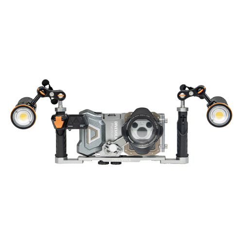 • Experience ergonomic design with an adjustable dual handle tray for stable and comfortable underwater shooting.
