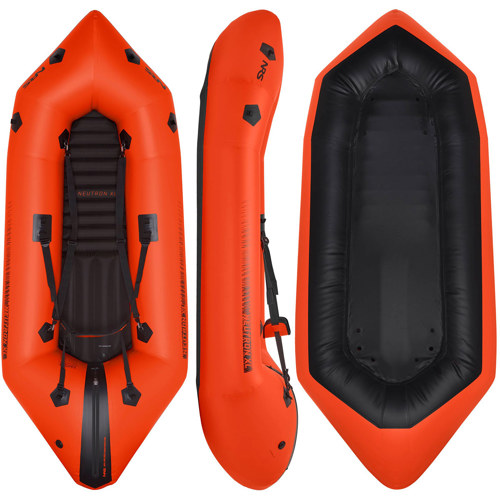 PVC-free inflatable packraft built for flatwater, slow-moving rivers, and splashy whitewater. Self-bailing floor increases maneuverability by releasing water as it enters. Full-length inflatable seat boosts buoyancy and paddling stability, while detachable backband supports ergonomic paddling posture. Minimalist thigh braces connect to four welded steel D-rings for edge-to-edge control. Compatible with inflatable kayak thigh straps for paddlers who require advanced outfitting.