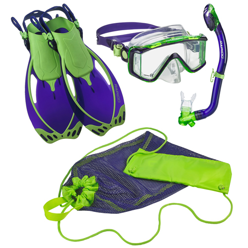 Rapido Clareza Marine Junior Mask, Fins and Snorkel Set Small/Medium Translucent Violet Lime
